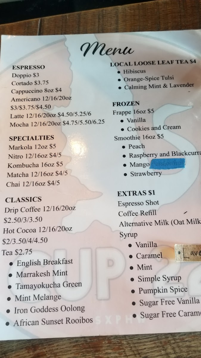 Welcome to Cup 22 Coffee House, a hidden gem located at 1711 Saxapahaw-Bethlehem Church Rd, Graham, NC. This cozy establishment offers a menu that elevates the coffee experience, featuring expertly crafted espresso drinks like the Doppio, Cappuccino, and Mocha, all designed to satisfy even the most discerning palates.